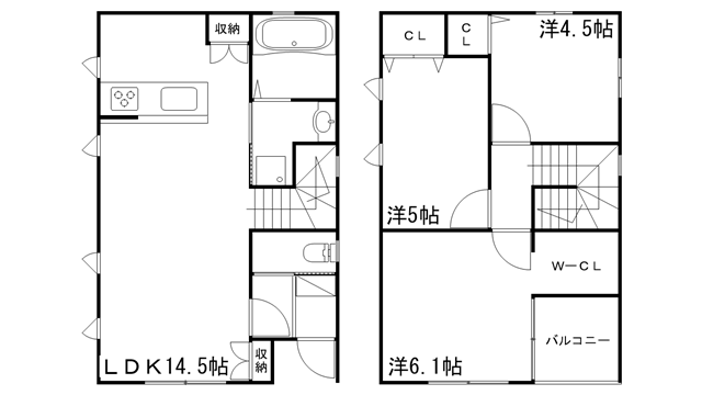 LDK14.5帖、洋室4.5帖、洋室5帖、洋室6.1帖 |